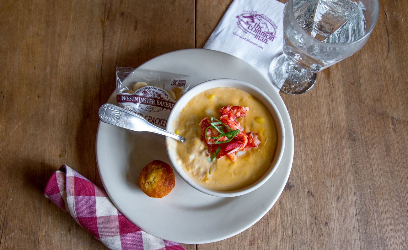 Our Lobster Corn Chowder is creamy, rich, topped with lobster meat, and worth the visit. Order up a bowl at Common Man Lincoln, Ashland, Concord, Claremont, Merrimack, and Windham, or at Lakehouse Grille in Meredith.