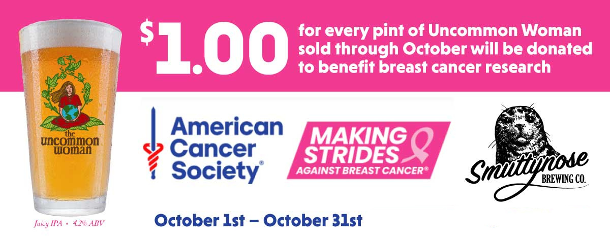 We’ve partnered with our friends at Smuttynose Brewing to raise funds for life-saving breast cancer research and programs throughout October.